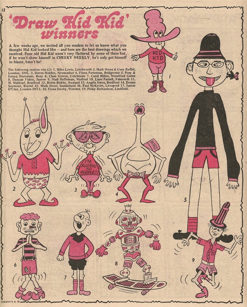 In the 26 November 1977 comic, the Friends of Cheeky competition, in which 500 Cheeky T-Shirts were to be won, was the subject on page 11. Tuesday then moved into page 11 for 2 weeks, after which the advertising feature What's New, Kids enjoyed a 2 week run.